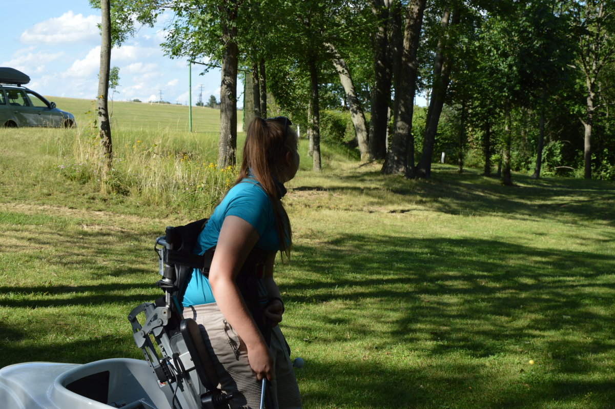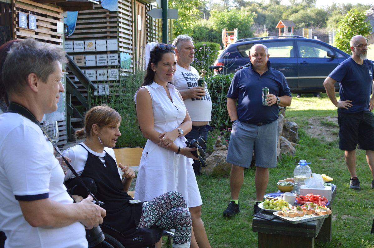A tak první den prázdnin a první den bez razantních omezení proběhlo ono setkání a jednání o možnostech sportovního užívání golfu Snail. Příjemná účast profesionálního trenéra a zájem členů klubu, to vše prodlužovalo čas odjezdu našich okolečkovaných přátel.