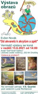 Po turnaji proběhne ve 14.00 vernisáž výstavy obrazů Evžena Nováka „Od akvarelů k akrylům a zpět“. K vernisáži zahraje V. S. Quartet pod vedením Lucie Richterové. Těšíme se na vás!